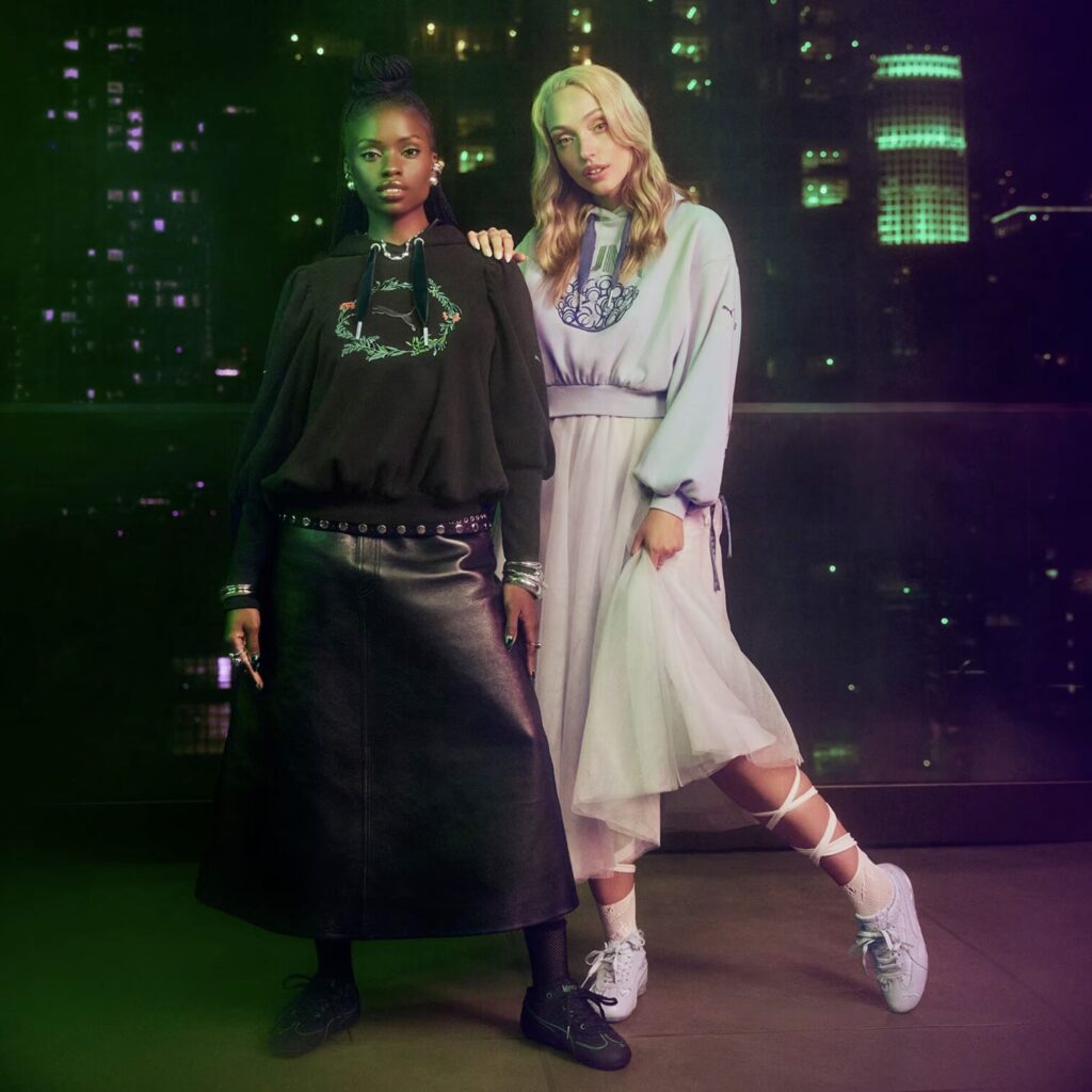 Wicked brings Oz to apparel with cropped hoodies and graphic tees that channel Glinda and Elphaba through lilac palettes, ballet inspired lace-up sleeve details, and moody black washes. Pieces include the Goodness hoodie with lace up sleeves, the Goodness tee in lilac, and the Oz tee with pink and green hits, all tied directly to the film’s characters. The capsule sits on soft fleece and cotton jersey with PUMA x Wicked graphics front and back so it reads culture first and retail ready.