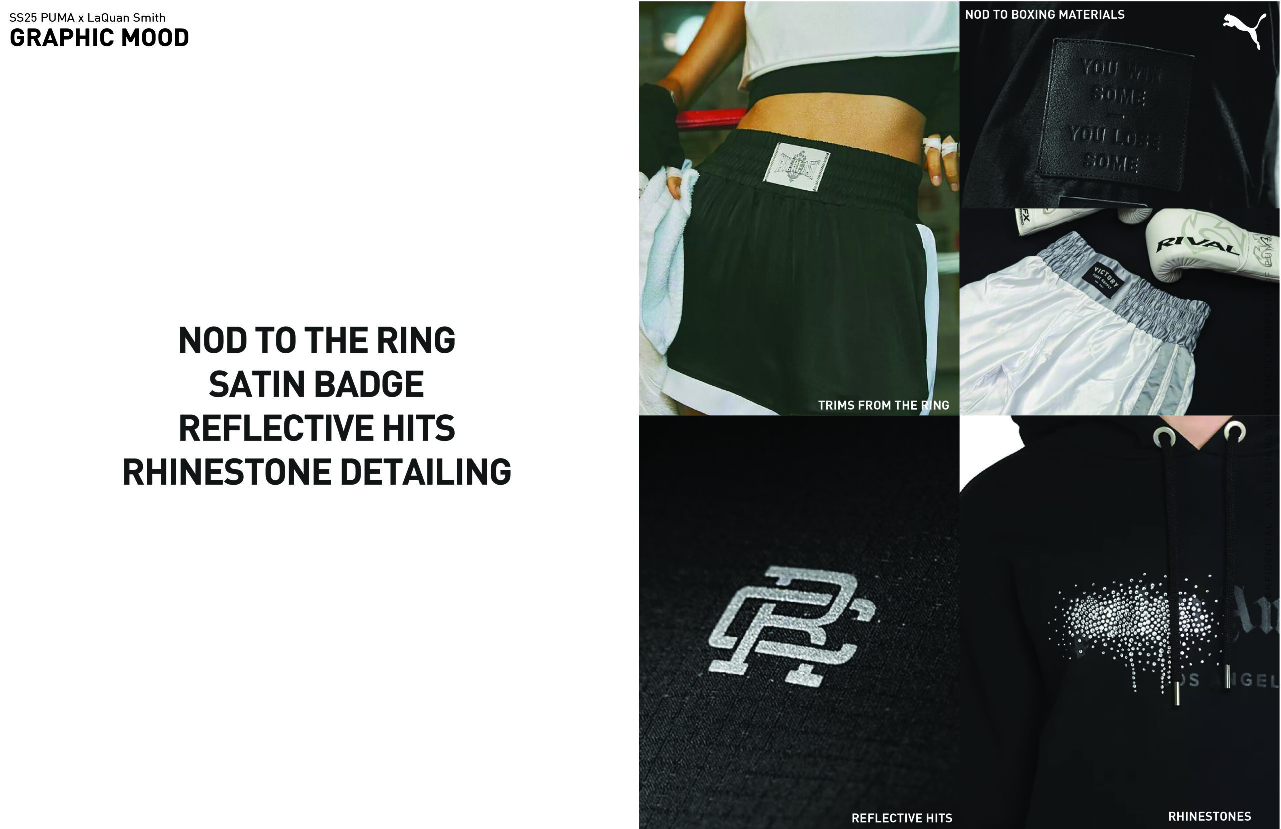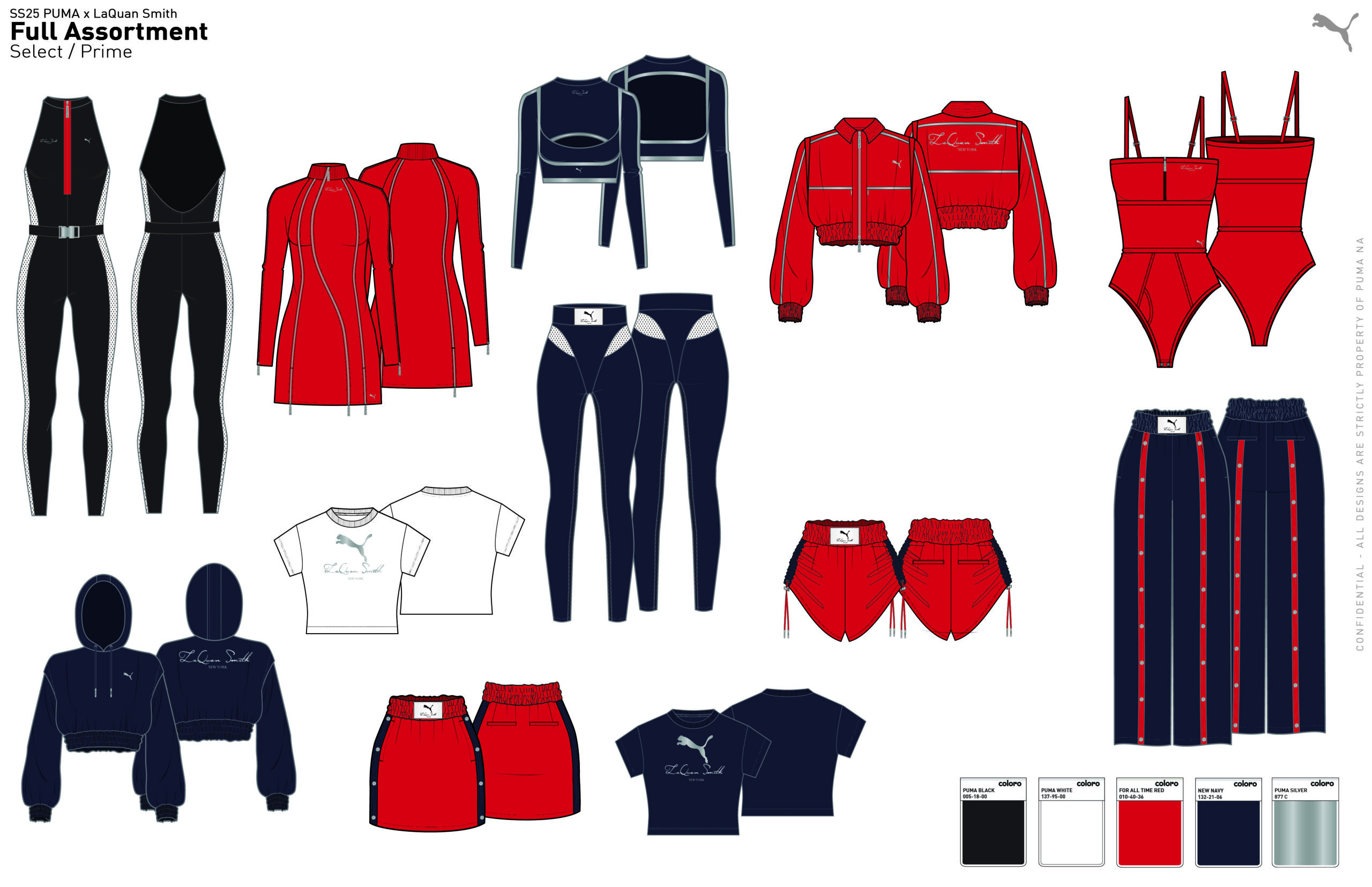 The PUMA x LaQuan Smith collaboration redefined sportstyle through a lens of power and sensuality. Inspired by the grit of boxing culture and the unapologetic confidence of Grace Jones, the collection fused sculpted athletic silhouettes with high-fashion attitude. Working closely with LaQuan, I helped merge his fearless vision with PUMA’s performance DNA, creating pieces that celebrated strength, movement, and modern femininity.