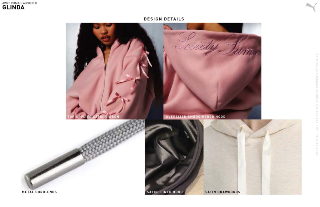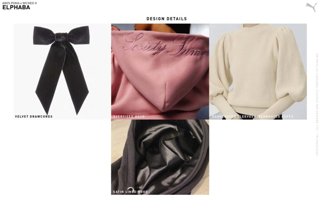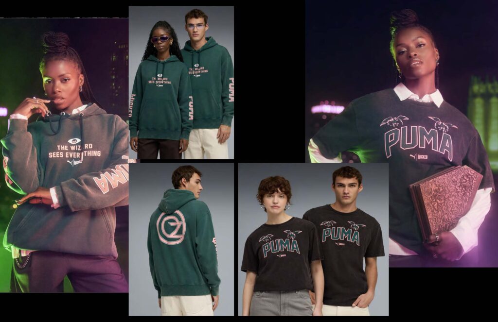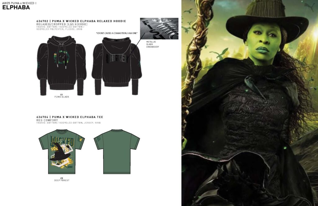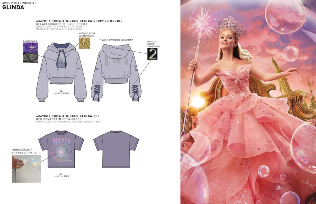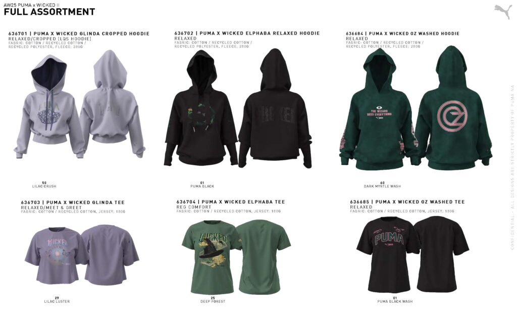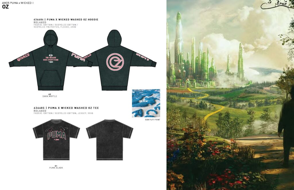 Wicked brings Oz to apparel with cropped hoodies and graphic tees that channel Glinda and Elphaba through lilac palettes, ballet inspired lace-up sleeve details, and moody black washes. Pieces include the Goodness hoodie with lace up sleeves, the Goodness tee in lilac, and the Oz tee with pink and green hits, all tied directly to the film’s characters. The capsule sits on soft fleece and cotton jersey with PUMA x Wicked graphics front and back so it reads culture first and retail ready.